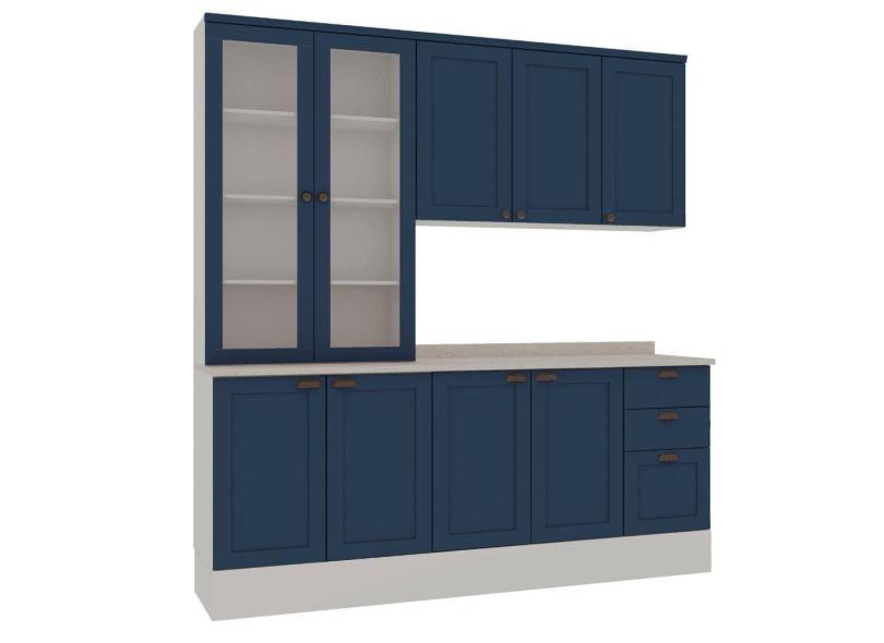 Cozinha Modulada Compacta Iluminata 4 Pecas C/crist 2p Branco Azul Vel