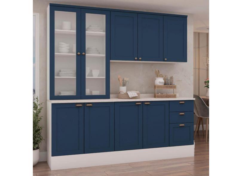 O menor preço encontrado no Brasil para Cozinha Modulada Compacta Iluminata 4 Peças com Cristaleiras 2 Portas Branco Azul Vel Genialflex atualmente é R$ 2.254,95.