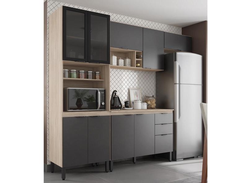 Cozinha Modulada Completa 10 Portas 02 Gavetas Firenze Avena Grafito Demóbile