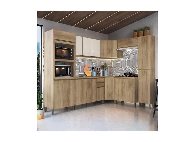 Cozinha Modulada Completa 8 Peças 16 Portas 2 Gavetas Montreal Castani