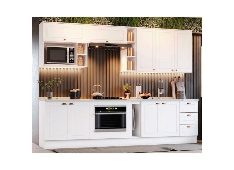 O menor preço encontrado no Brasil para Cozinha Modulada Completa Americana 13 Peças (5Aéreos+4Balcões+4Complementos) C5P41 Branco - Henn atualmente é R$ 3.317,56.
