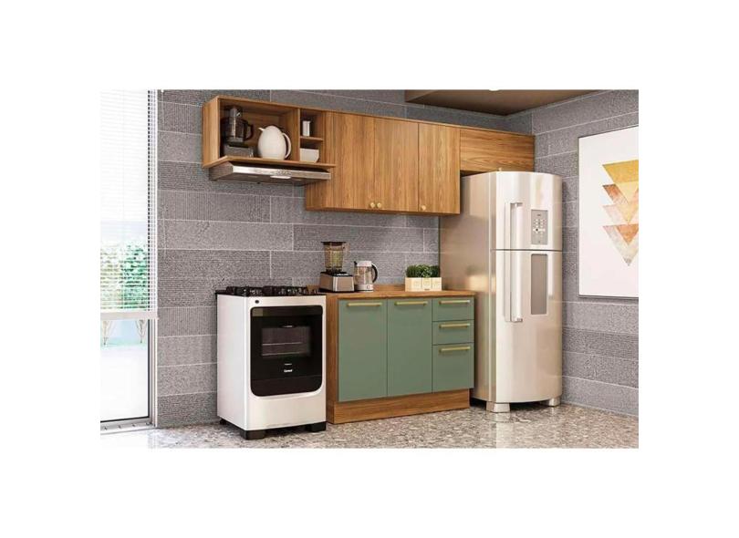 Cozinha Modulada Completa Botanic 5 Peças (3Aéreos+1Balcão+1Complemento) M662 Nogueira/Verde Oliva - Kappesberg