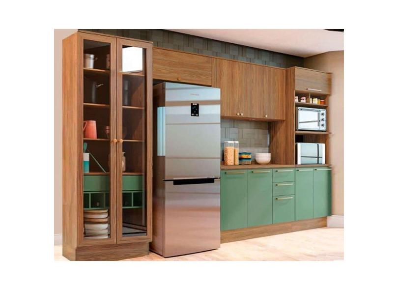 Cozinha Modulada Completa Botanic 6 Peças (2Aéreos+1Balcão+2Paneleiros+1Complemento) M665 Nogueira/Verde Oliva - Kappesberg
