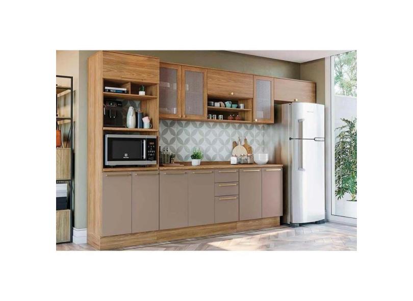 Cozinha Modulada Completa Botanic 8 Peças (3Aéreos+2Balcões+1Paneleiro+2Complementos) M663 Nogueira/Fendi - Kappesberg