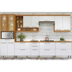 Cozinha Modulada Completa Burguesa Premium 7 Peças (3Aéreos+3Balcões+1Paneleiro) C6P58 Freijo/Off White - Nesher
