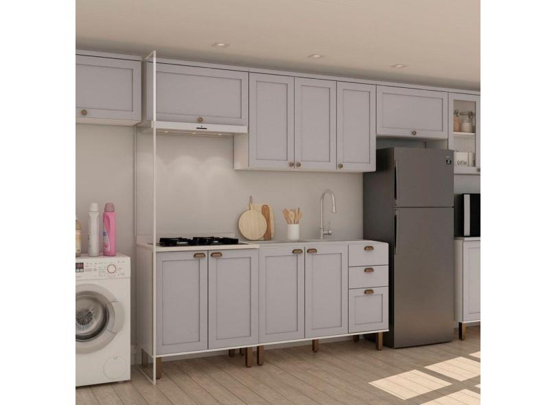 O menor preço encontrado no Brasil para Cozinha Modulada Completa com Aérea de Serviço Integrada 100% Mdf com Tampo Impermeável Branco/Cinza atualmente é R$ 2.676,00.