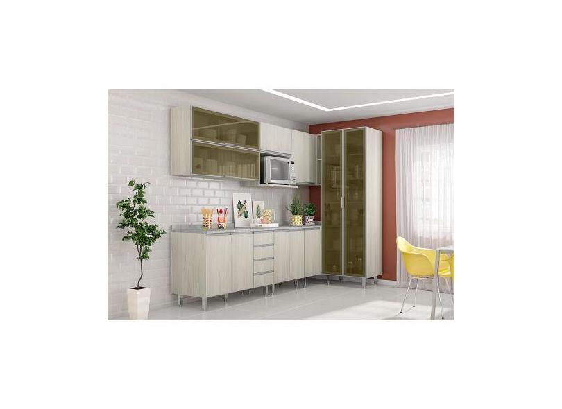 O menor preço encontrado no Brasil para Cozinha Modulada Completa com Tampo 8 Peças Legno Crema com Vidro Refl atualmente é R$ 8.204,50.