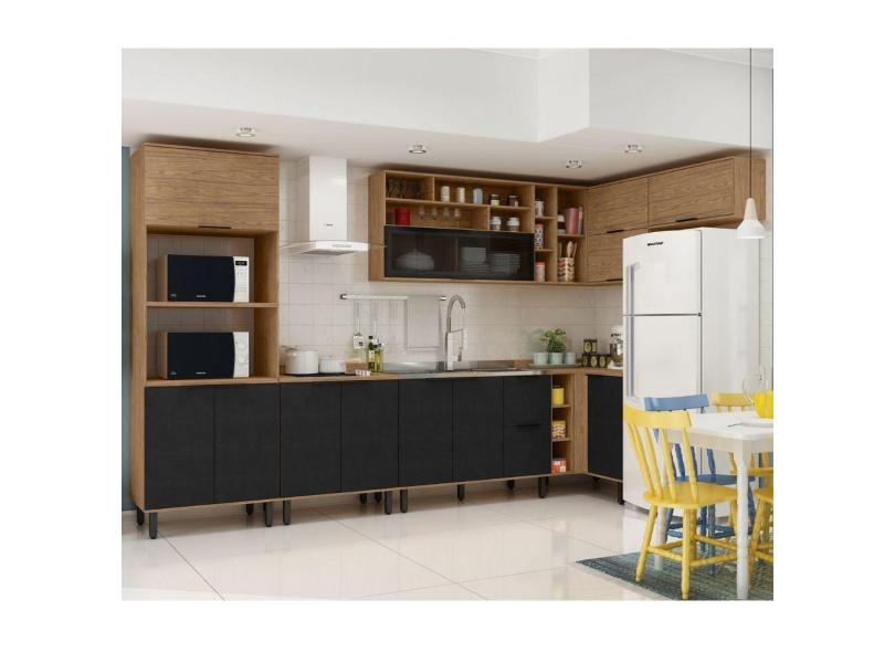 O menor preço encontrado no Brasil para Cozinha Modulada Completa De Canto Mdf 9 Peças Lombardia Com Porta De Vidro - Cor Freijó Nero atualmente é R$ 3.599,00.