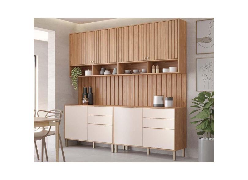 Cozinha Modulada Completa Divina 6 Peças (2Aéreos+2Balcões+2Complementos) CZ005 Freijo/Off White - MGM