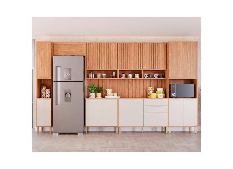 Cozinha Modulada Completa Divina 9 Peças (3Aéreos+2Balcões+2Paneleiros+2Complementos) CZ010 Freijo/Off White - MGM