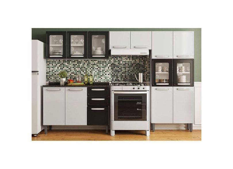 O menor preço encontrado no Brasil para Cozinha Modulada Completa Evidence 4pçs (2 Armários Balcão Paneleiro) C4P55 Branco/Preto - Bertolini atualmente é R$ 2.480,33.