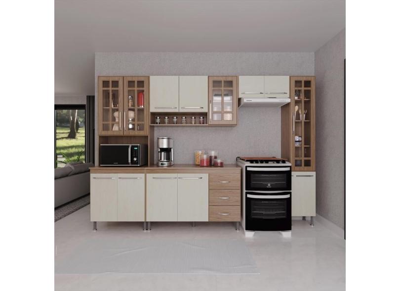 O menor preço encontrado no Brasil para Cozinha Modulada Completa Fidelitá Paris 5 Peças 295cm 13 Portas 3 Gavetas Com Tampo Nogal/Salinas atualmente é R$ 1.369,90.