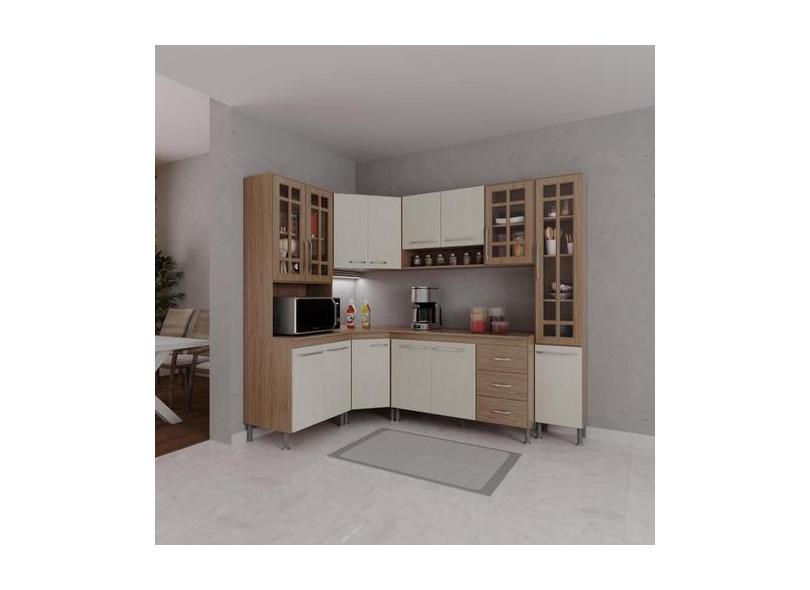 Cozinha Modulada Completa Fidelitá Paris 6 Peças 375cm 14 Portas 3 Gav