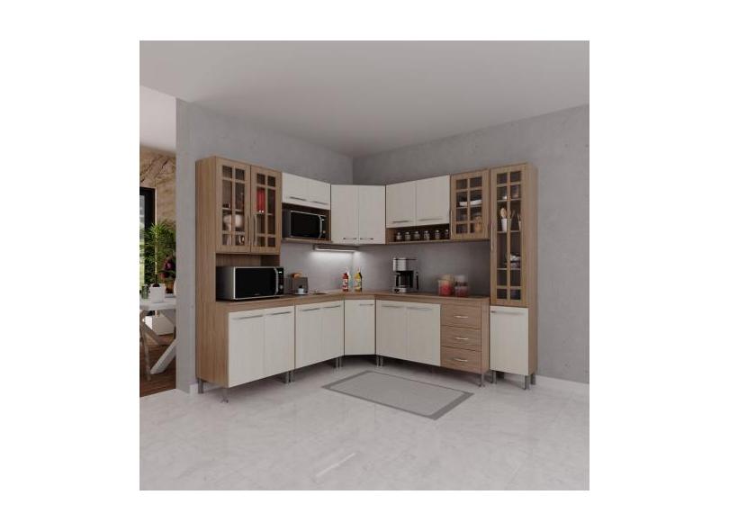 Cozinha Modulada Completa Fidelitá Paris 8 Peças 445cm 18 Portas 3 Gav