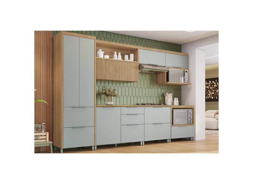 Cozinha Modulada Completa Marquesa 7 Peças (3Aéreos+3Balcões+1Paneleiro) C6P41 Nature/Verde - Nesher