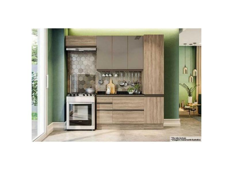 Cozinha Modulada Completa Maxxi (2 Armários + 1 Balcão + 1 Paneleiro + 1 Complemento) 5 Peças Cz245 Nogal - Kappesberg