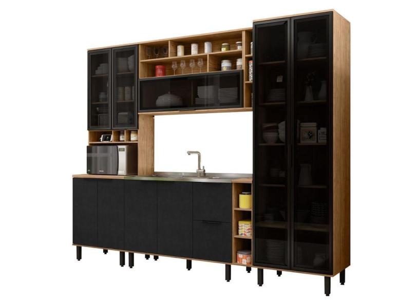 O menor preço encontrado no Brasil para Cozinha Modulada Completa Mdf 6 Peças Lombardia Com Portas De Vidro 280Cm- Cor Freijó Nero atualmente é R$ 3.707,00.