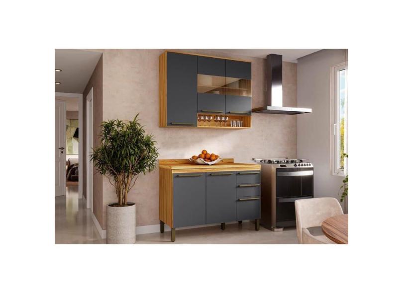 Cozinha Modulada Completa Nápoli Prime 2 Peças (1Aéreo+1Balcão) C2P04 Amendoa/Grafite - Ronipa