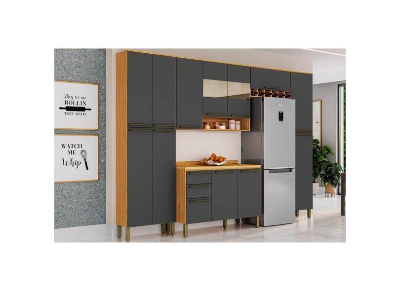 Cozinha Modulada Completa Nápoli Prime 5 Peças (2Aéreos+1Balcão+2Paneleiros) C5P04 Amendoa/Grafite - Ronipa