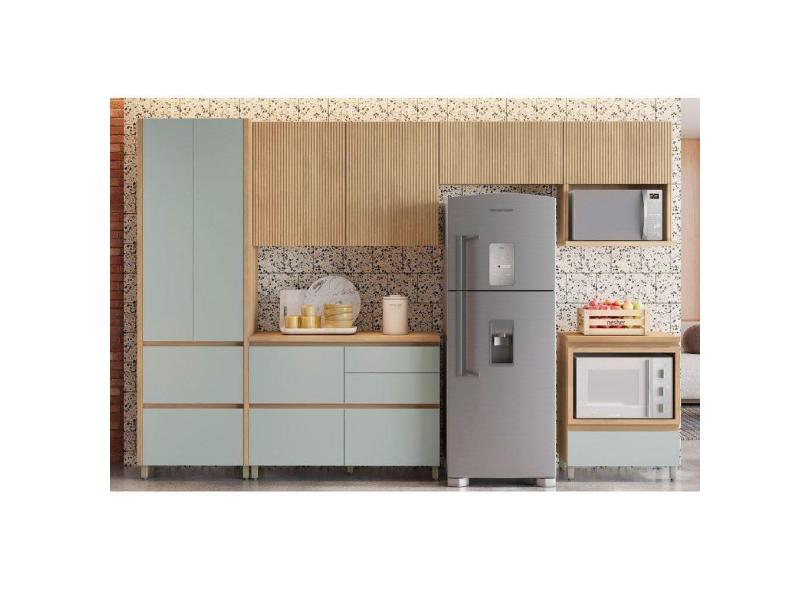 Cozinha Modulada Completa Rainha Gourmet 6 Peças (3Aéreos+2Balcões+1Paneleiro) C6P01 Nature/Verde - Nesher