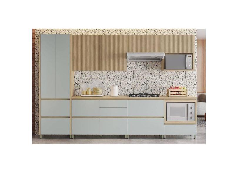 Cozinha Modulada Completa Rainha Gourmet 7 Peças (3Aéreos+3Balcões+1Paneleiro) C6P38 Nature/Verde - Nesher