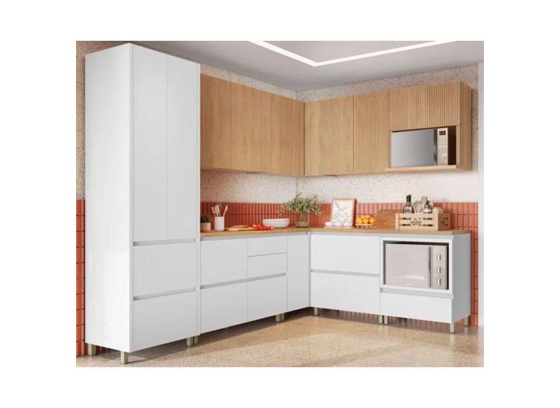 Cozinha Modulada Completa Rainha Gourmet 9 Peças (4Aéreos+4Balcões+1Paneleiro) C9P34 Branca/Nature - Nesher