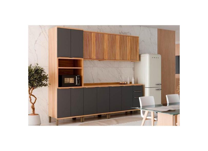 Cozinha Modulada Completa Sauvignon 5 Peças (2Aéreos+2Balcões+1TorreQuente) C5P90 Amendoa/Grafite - Ronipa