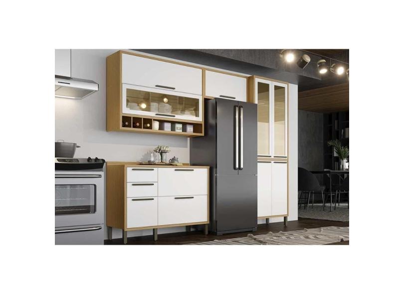 Cozinha Modulada Completa Syrah 4 Peças (2Aéreo+1Balcão+1Paneleiro) C4P05 Amendoa/Branco - Ronipa