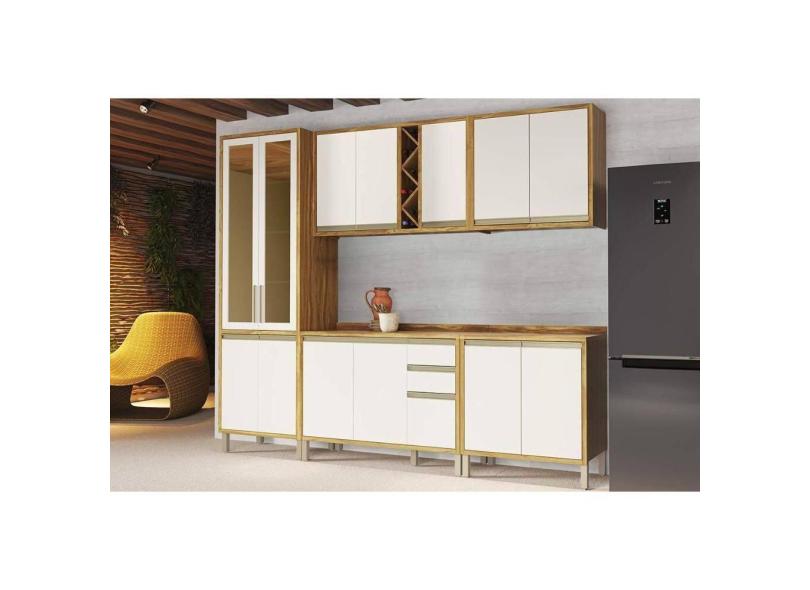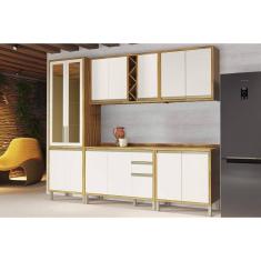 Cozinha Modulada Completa Tempranillo 5 Peças (2Aéreos+2Balcões+1Cristaleira) C5P81 Amendoa/Off White - Ronipa