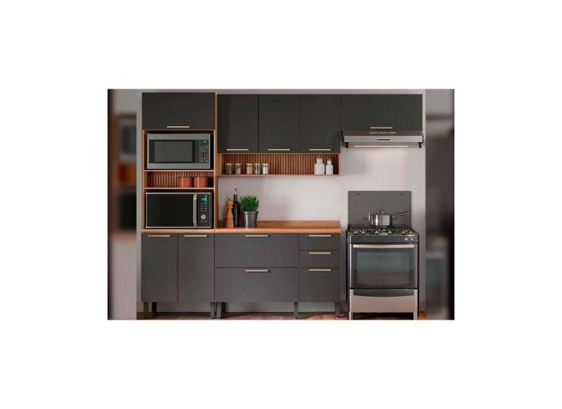 Cozinha Modulada Completa Thela Avelã 4 Peças (2Aéreos+1Balcão+1Panele