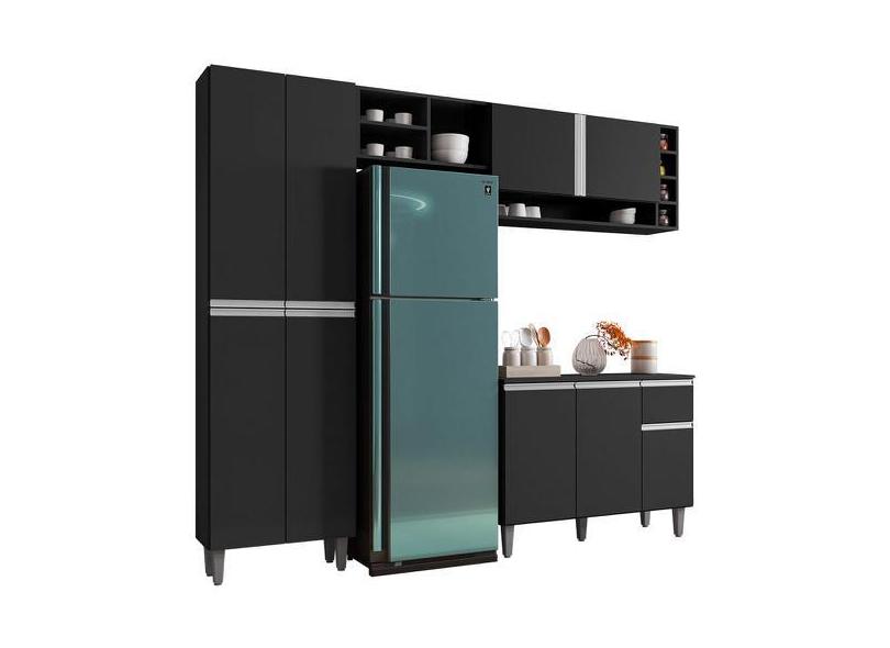 Cozinha Modulada Completa Vanessa 5 Peças 230cm Preto Fosco - Desk Des