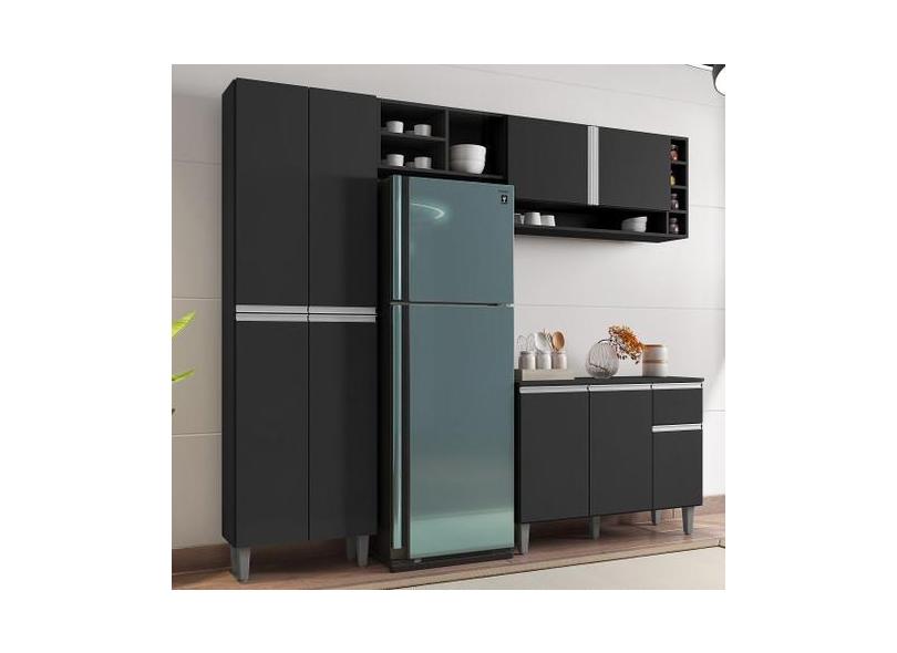 Cozinha Modulada Completa Vanessa Com 9 Portas Preto Fosco AJL