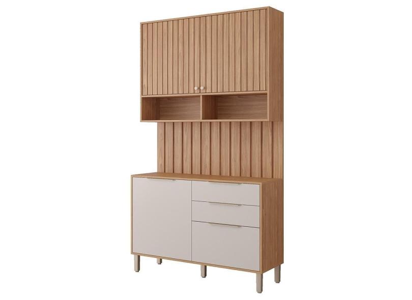 O menor preço encontrado no Brasil para Cozinha Modulada Divina 3 Peças com Armário Aéreo, Balcão 120cm e Painel Ripado - MGM atualmente é R$ 1.034,40.