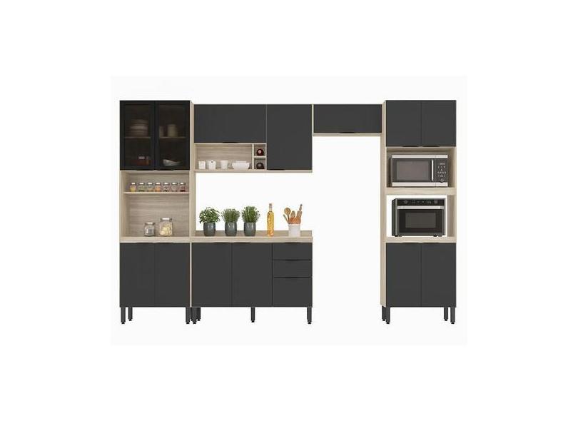 Cozinha Modulada Firenze Fi0001 Avena Grafito - Demóbile - Demobile