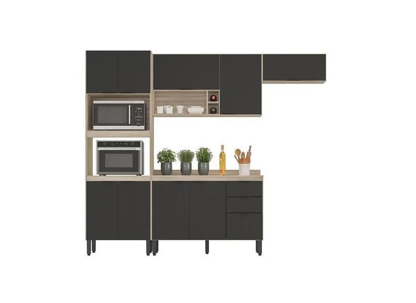 Cozinha Modulada Firenze Fi0003 Avena Grafito - Demóbile - Demobile