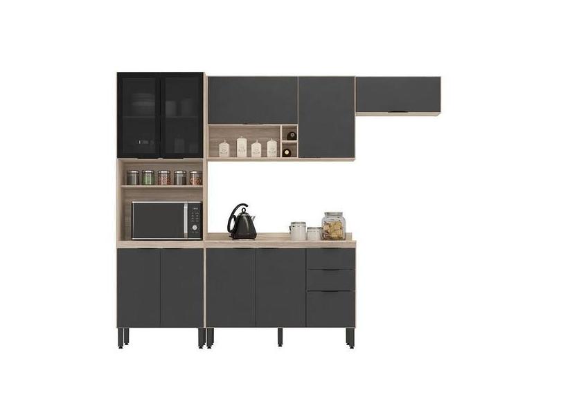 Cozinha Modulada Firenze Fi0006 Avena Grafito - Demóbile - Demobile