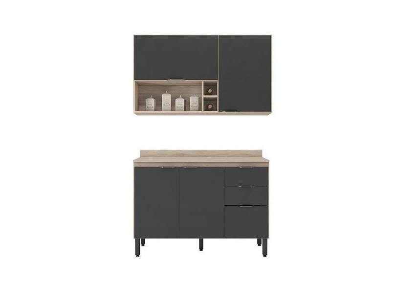 Cozinha Modulada Firenze Fi0012 Avena Grafito - Demóbile - Demobile