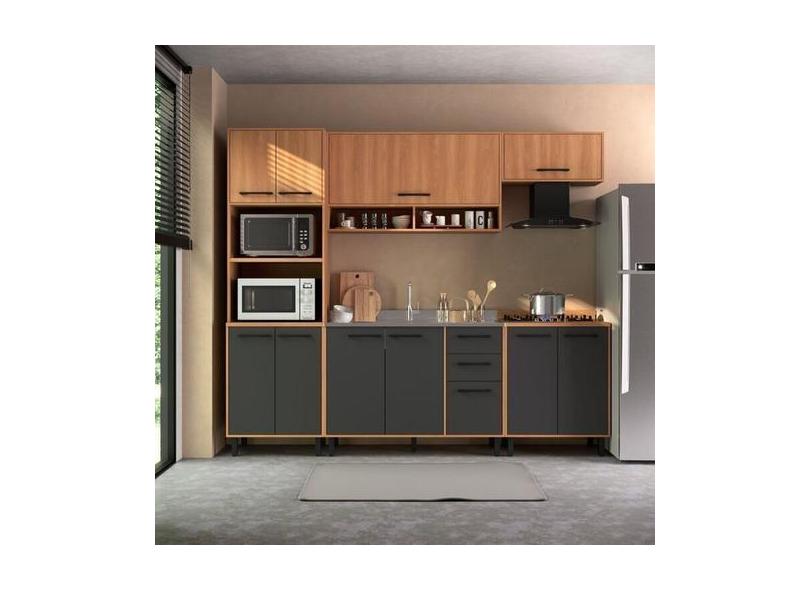 Cozinha Modulada Havana 05 Peças Com 11 Portas E 02 Gavetas Rovere/Gra