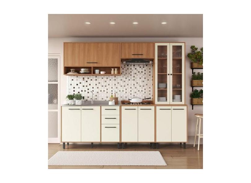 Cozinha Modulada Havana 5 Peças Com Cristaleira 11 Portas E 2 Gavetas