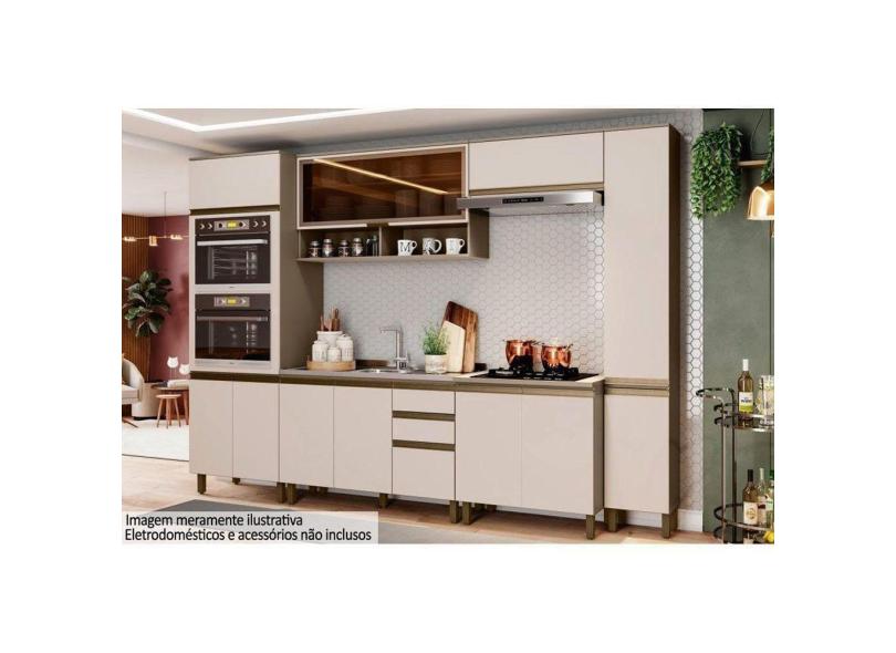 Cozinha Modulada Henn 8pçs 2 Armários 2 Balcões 2 Paneleiros 2 Complementos C8P12 Duna/Cristal