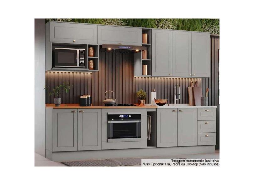 Cozinha Modulada Henn Americana Completa 12 Peças (5Aéreos+4Balcões+3Complementos) CZ314 Cinza-Henn