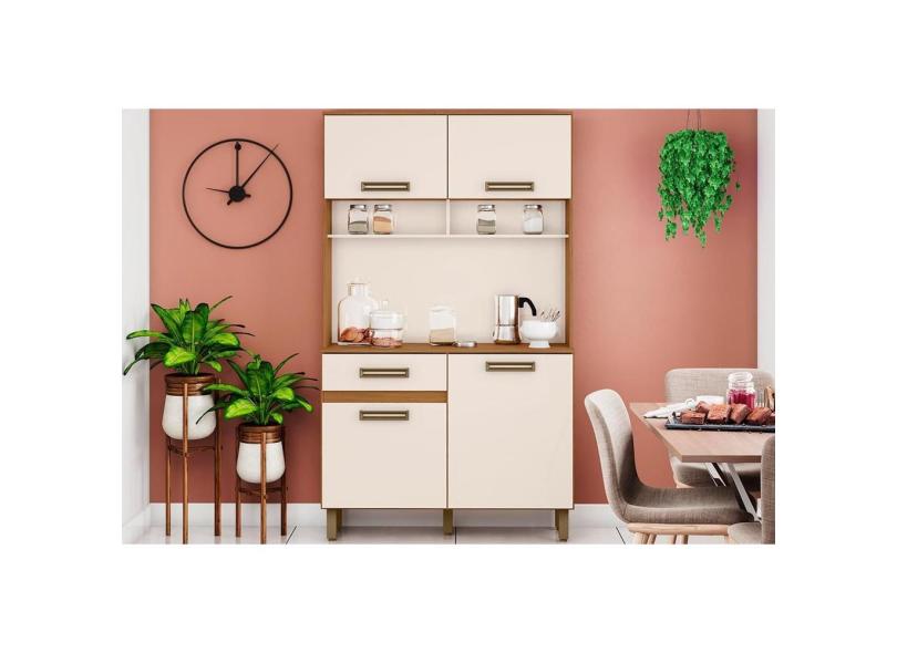 Cozinha Modulada Henn Briz Perla Briz c/4 Portas e 1 Gaveta 105x38x180cm Nature/Off White-Henn