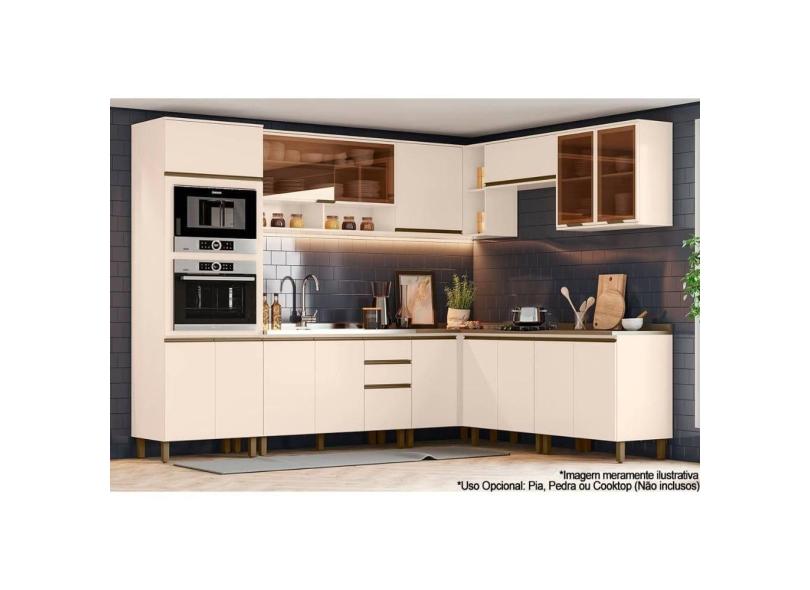 Cozinha Modulada Henn Connect 13 Peças (4Aéreos+4Balcões+1Paneleiro+4Complementos) C6P05 Off White-Henn