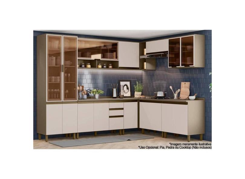 Cozinha Modulada Henn Connect 13 Peças (4Aéreos+4Balcões+1Paneleiro+4Complementos) C6P06 Duna/Cristal-Henn