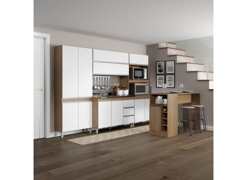 Cozinha Modulada Pequena com Bancada Ilha Sabrina 280 x 202 Cm 6 Peças MDP Branco MENU
