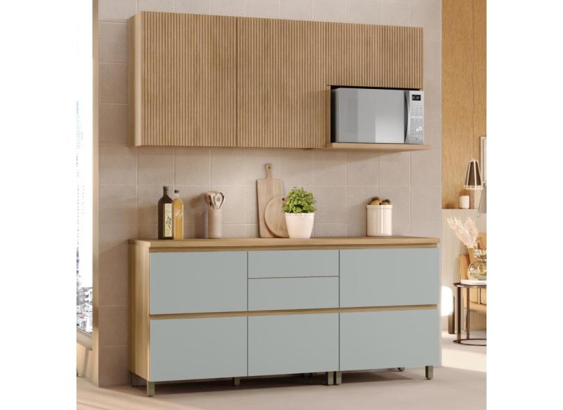 Cozinha Modulada Rainha Nesher Ripada mdf Com 4 Peças Nature Verde