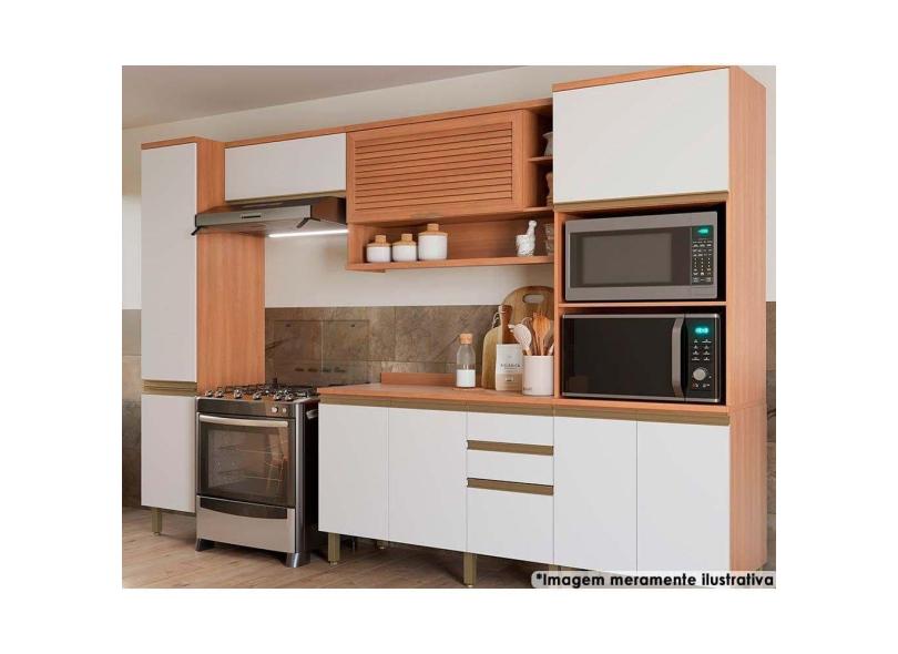 Cozinha Modulada Telasul Thela Macadâmia Thela Macadâmia 5 Peças (2Aéreos+1Balcão+2Paneleiros) CZC20 Freijo/Branco-Telasul