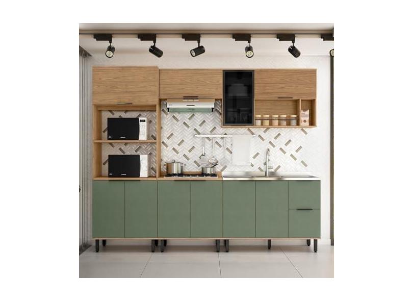 O menor preço encontrado no Brasil para Cozinha Modulada Toscana 5 Peças em Mdf com Aéreo 1200 Porta de Vidro e Torre Quente 2 Fornos Freijó/jade atualmente é R$ 1.564,43.