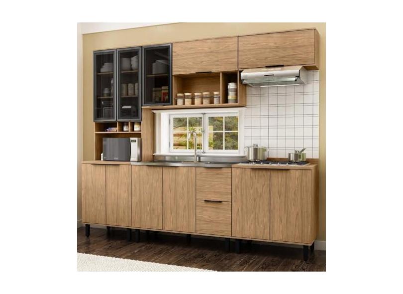 O menor preço encontrado no Brasil para Cozinha Modulada Toscana 5 Peças Mdf com Aéreo 1200 Porta de Vidro e Paneleiro Freijó atualmente é R$ 1.794,43.