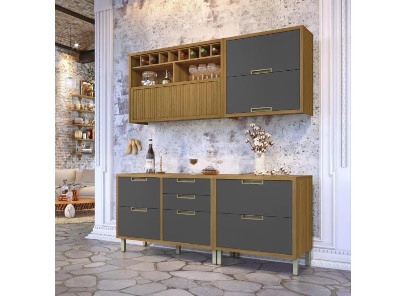 Cozinha Nesher 4 Peças 2 Balcões 2 Armários Aéreos Imperatriz Marrom Freijó Cinza Grafite